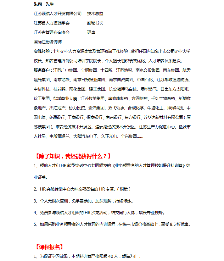 領(lǐng)航人才《業(yè)務(wù)領(lǐng)導(dǎo)者的人才管理技能提升》特訓(xùn)營2017.4/26-27 南京