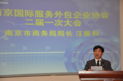 協(xié)會會長、副會長、理事單位及全體會員單位負責人、市級服務(wù)外包人才培養(yǎng)基地、培訓機構(gòu)以及各區(qū)(開發(fā)區(qū))商務(wù)主管部門負責人近120人參加了本次大會。市服務(wù)外包企業(yè)協(xié)會常務(wù)副會長仇少明做了協(xié)會全年工作報告,市商務(wù)局副局長方芳為南京服務(wù)外包網(wǎng)的新網(wǎng)站正式上線進行了發(fā)布。市商務(wù)局局長汪振和介紹了2013年全市商務(wù)工作發(fā)展情況和主要工作。汪局長提出,要全面落實市委、市政府的戰(zhàn)略部署,奮力進取,創(chuàng)新實干,用實際行動譜寫南京服務(wù)外包產(chǎn)業(yè)發(fā)展的新篇章。