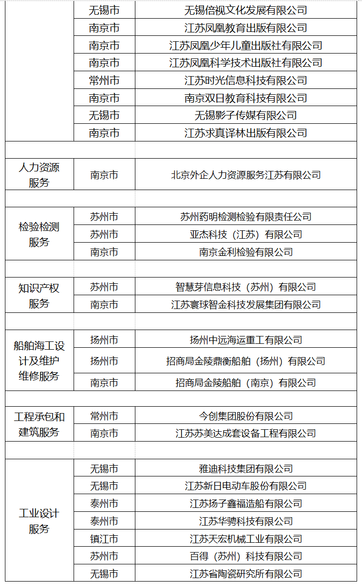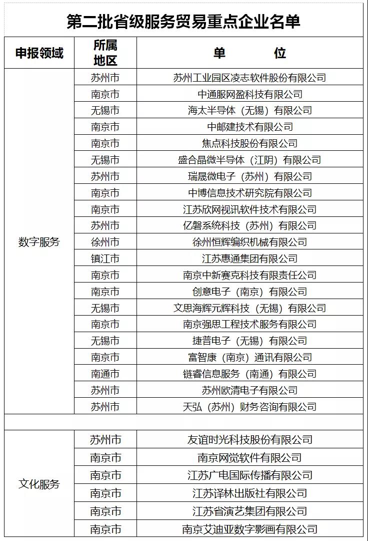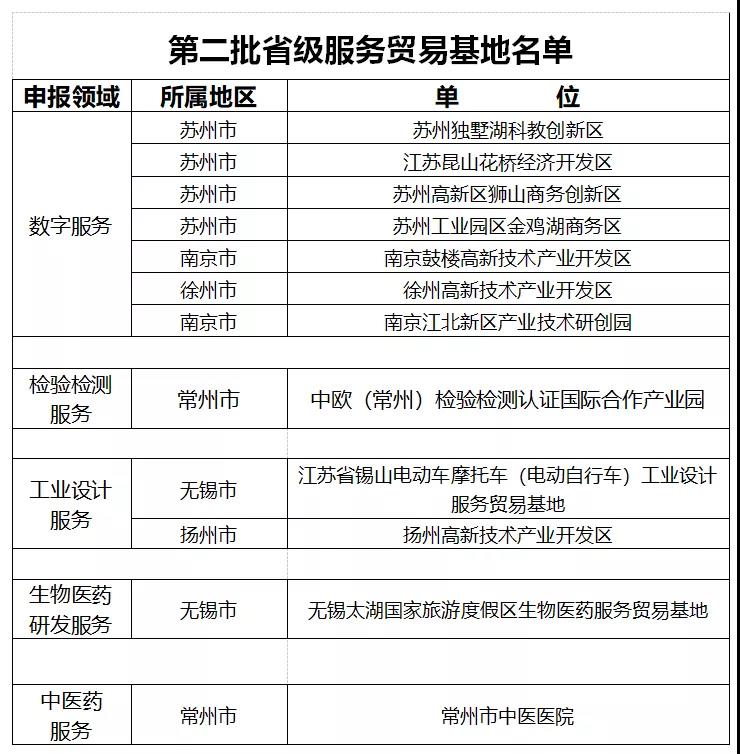 省商務廳發(fā)布2021年江蘇省服務貿易基地和重點企業(yè)名單