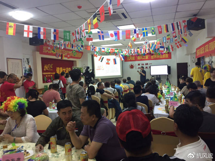 2018年6月22日晚,60余位痛風(fēng)患者及家屬一起歡聚沈陽抗風(fēng)竤中醫(yī)門診二樓多功能廳,和抗風(fēng)竤的醫(yī)生、護(hù)士、康復(fù)指導(dǎo)師們,一起度過了個(gè)難忘的世界杯之夜。