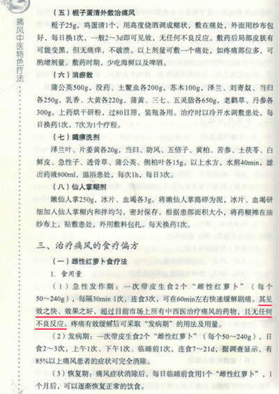 【以上為《痛風(fēng)中醫(yī)特色療法》一書中對雌性紅蘿卜的經(jīng)典論述】