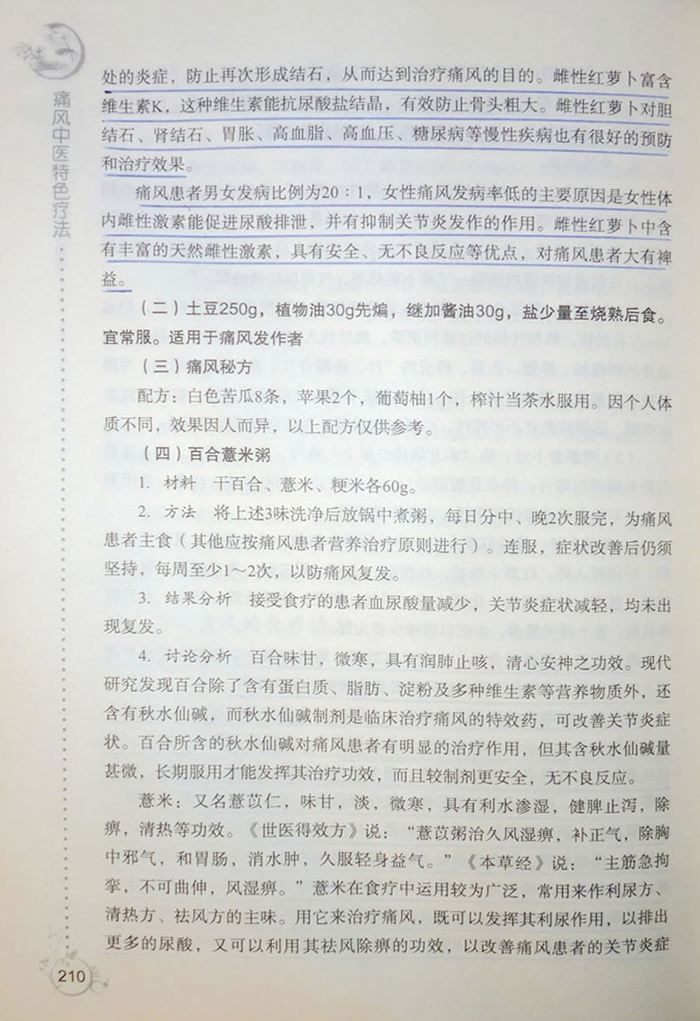 本文“雌性紅蘿卜”痛風(fēng)食療方法引用《痛風(fēng)中醫(yī)特色療法》一書P208~P210頁。 出版社:人民軍醫(yī)出版社